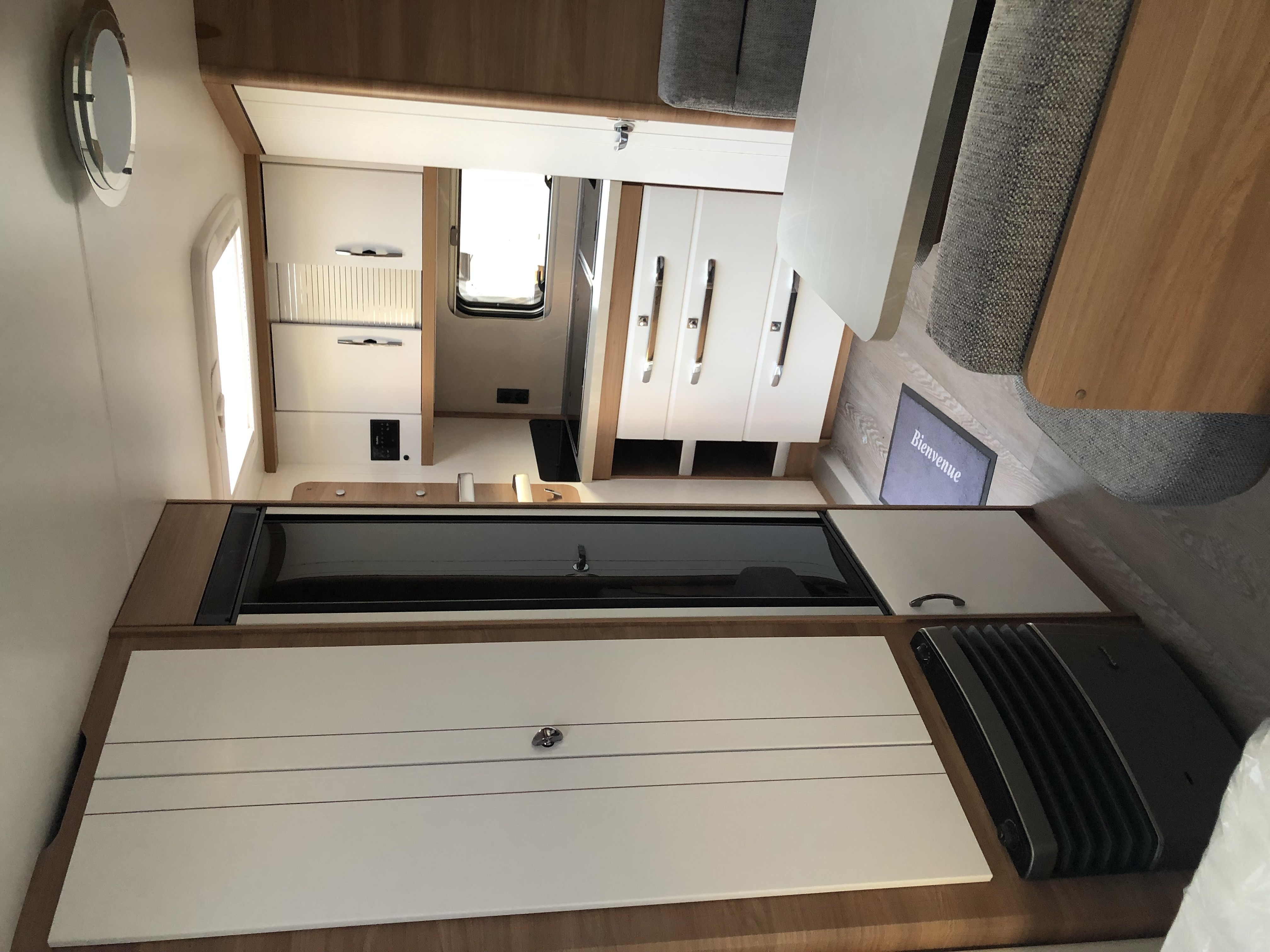Hobby De Luxe 460 SFF - année 2023 - 3 couchages, - PTAC : 1350 kg, poids à vide : 1224 kg - kilométrage: 1000km – Idéale pour un couple avec lit central CARACTÉRISTIQUES PRINCIPALES: Cuisine équipée : •Réchaud et évier en inox avec 3 feux, allumage électrique et abattant verre en deux parties. •Réfrigérateur DOMETIC 133 litres, série 10, avec compartiment congélation 12 litres, à double butée. •Grands tiroirs Soft-Close avec verrouillage Push-Lock. •Moustiquaires et stores occultants •Crédence avec moustiquaire, store occultant intégré, lampe de cuisine et prises 230 V . Couchages confortables : •Lit central avec matelas •Sommier à lattes avec ouverture assistée par vérin à gaz. •Dînette transformable en lit (1,750 x 770 mm) •Confort toutes saisons : •Chauffage TRUMA S-3004 avec air pulsé et soufflerie 12 V. •Chauffe-eau TRUMA Therme intégré. •Salle de bain compacte et fonctionnelle : •Cabinet de toilette avec lavabo • WC pivotant THETFORD . PERFORMANCES ET CAPACITÉS: Dimensions et poids : •Longueur totale : 6,762 m. •Largeur totale : 2,300 m. •Hauteur intérieure : 1,950 m. •Masse maximale techniquement admissible (MMTA) : 1,350 kg DÉCORATION INTÉRIEURE PERSONNALISÉE: Réalisée par une professionnelle – Rideaux transparents en lin 100 % blanc – Double rideau blanc coton – Dessus de lit et 6 coussins assorti au rideau blanc coton OPTIONS . Vendue avec: - jerricane plastique avec bec verseur de 30 litres - Câble adaptateur électrique - Les deux rétroviseurs à fixer sur votre véhicule - 2 Rampes de Nivellement pour Caravane - Nécessaire dépannage crevaison - 2 bouteilles d’additif sanitaire WC à action biologique verte ( 1 rempli au 3/4, l’autre neuve) ******************************************* ENTRETIEN ET STOCKAGE Depuis son achat notre caravane est stationnée de septembre à juin chez un professionnel de l’hivernage et du gardiennage en Corse du Sud, qui l’entretien avec soin, la nettoie, l’aère périodiquement. Les joints des vitres et de la porte sont talquées après chaque été pour éviter l’usure prématurée du caoutchouc, des pièges à fourmis sont déposés et renouvelés régulièrement. ****************************************** ****Visible sur RDV à Monacia d’Aulléne ****