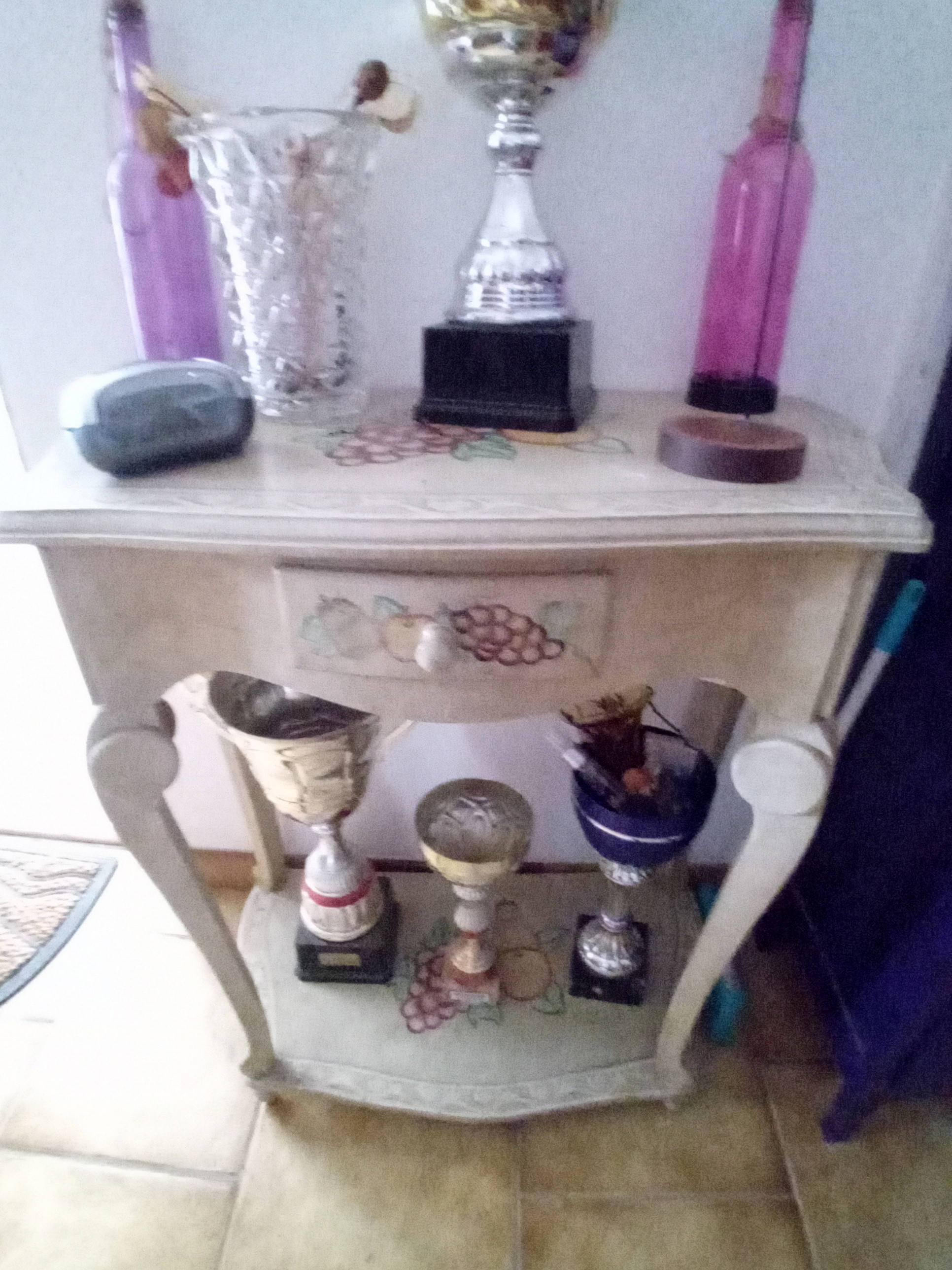 console deux plateaux bois beige peinte motif fruits Environ 70 x 70 x 33 cm